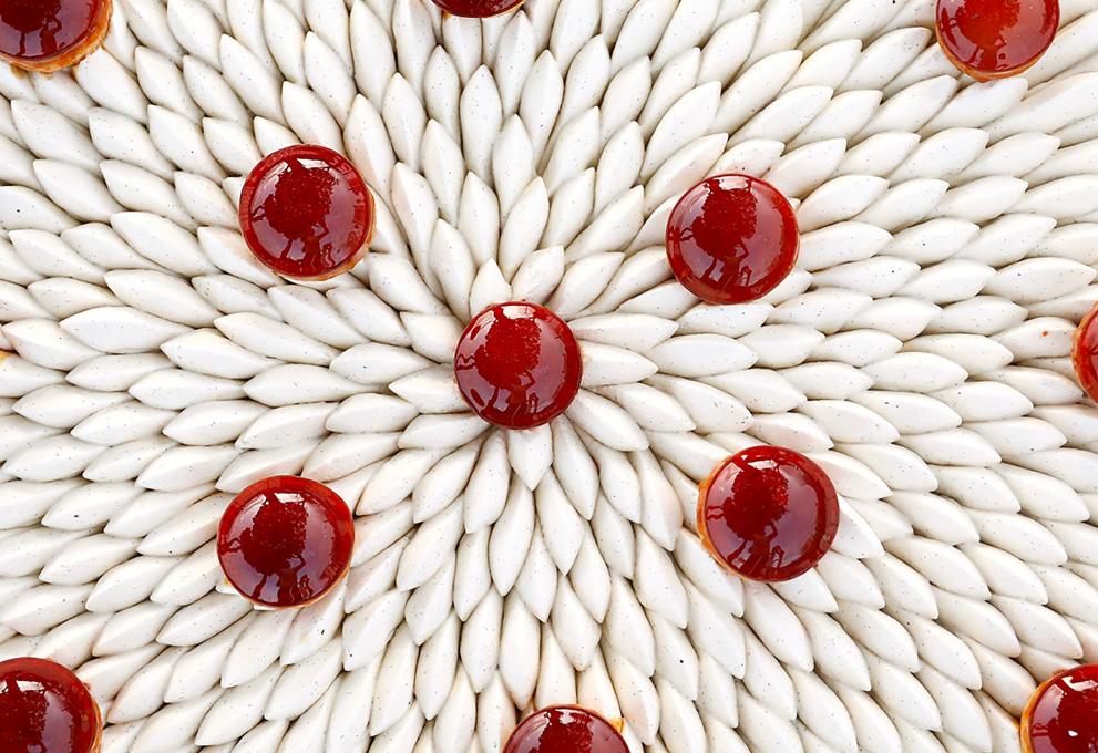 Biscuit japonais, marmelade citron, marmelade orange, marmelade pamplemousse, mousse vanille, mini agrumes trompe l’oeil.